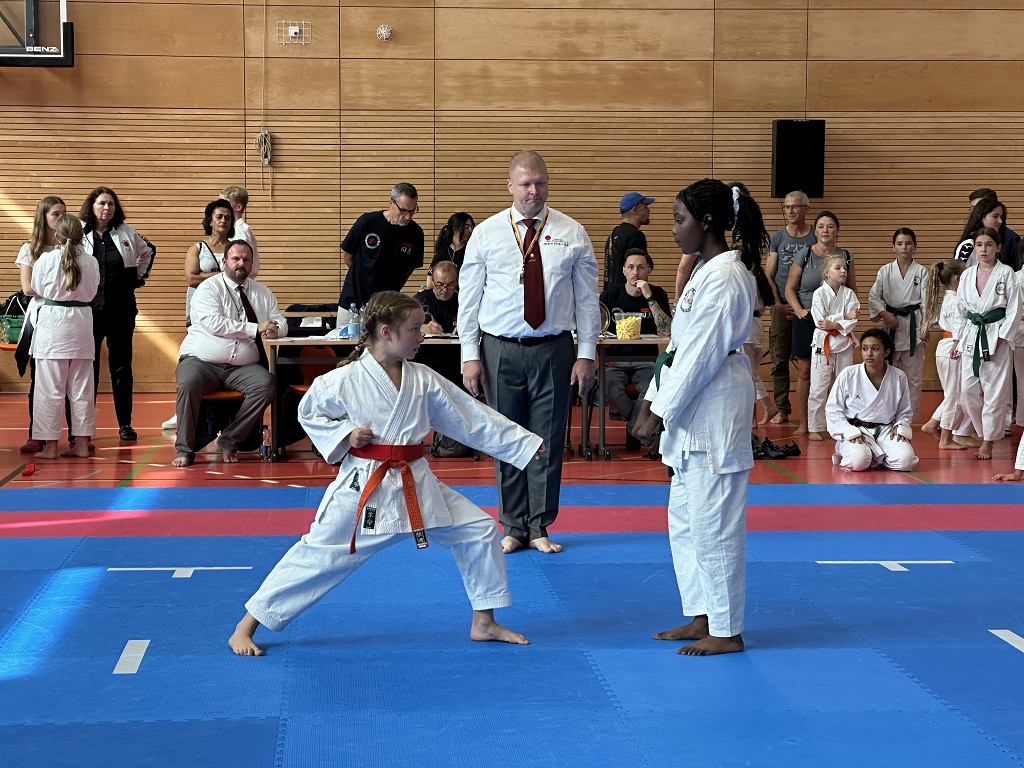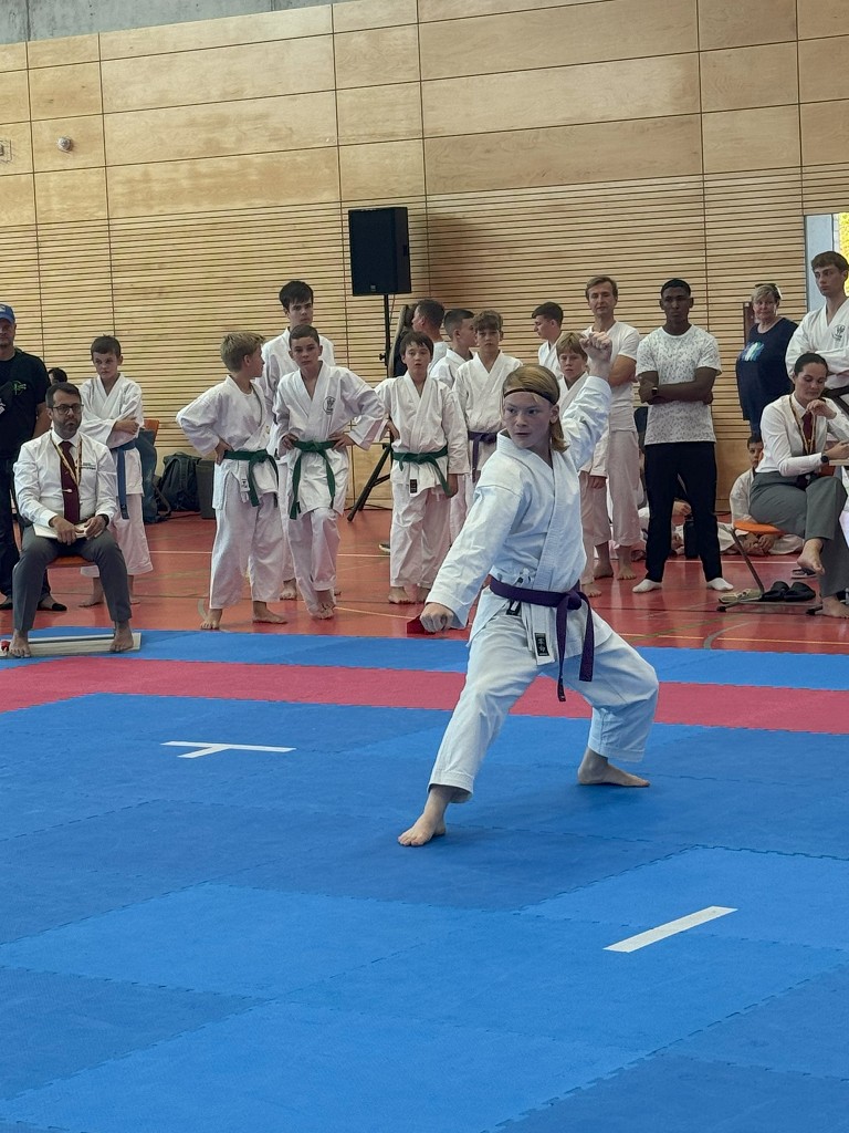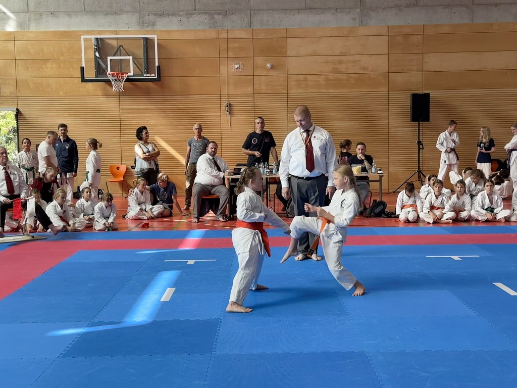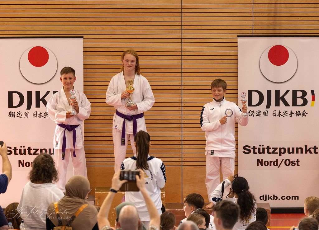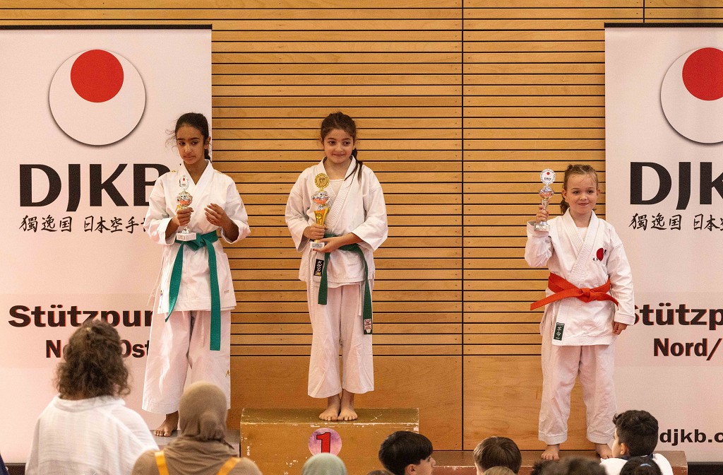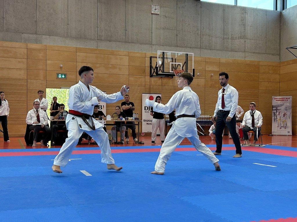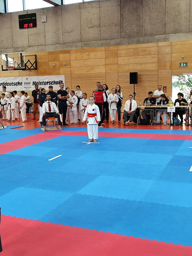 Nach der Sommerpause reiste der āHatsuun Jindoā Karate-Club Magdeburg-Barleben e. V. am vergangenen Samstag (20.09.2025) mit gleich 37 Startern zur Norddeutschen Meisterschaft des DJKB an. Sie reihten sich ein in ein Feld von über 300 Karatekas aus 36 Vereinen, die überwiegend aus dem Norden Deutschlands nach Hannover kamen. Unter den Startern des HKC waren auch einige sehr aufgeregte Kinder, die ihren ersten Wettkampf an dem Samstag bestritten. Zu Ihnen gehƶrte Finja Thierbach, die sich am erfolgreichsten schlug. Mit einer Ruhe, die üblicherweise erst mit jahrelanger Erfahrung einhergeht, meisterte sie Runde um Runde und sicherte sich im Kata-Finale der neun- bis elfjƤhrigen mit einer technisch überzeugenden Heian Nidan die Bronzemedaille ā ein wunderbarer erster Erfolg. In der gleichen Gruppe schaffte es ihre Teamkollegin Leona Grasme ebenso ins Finale. Auch für sie war es der erste Wettkampf und die Aufregung groĆ, doch die lieĆ sie sich nicht anmerken. Leona belegte mit ihrer kraftvollen und dynamischen Kata den vierten Platz.