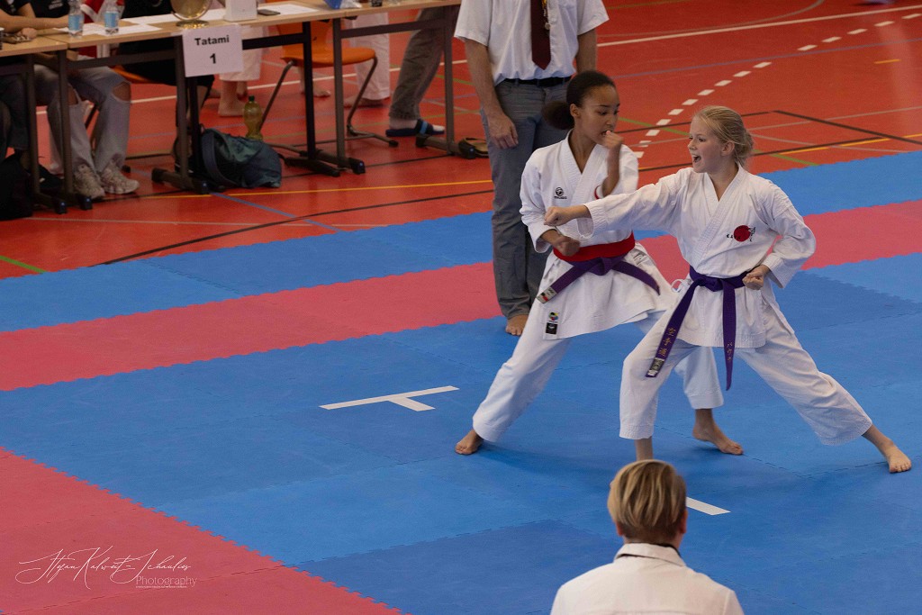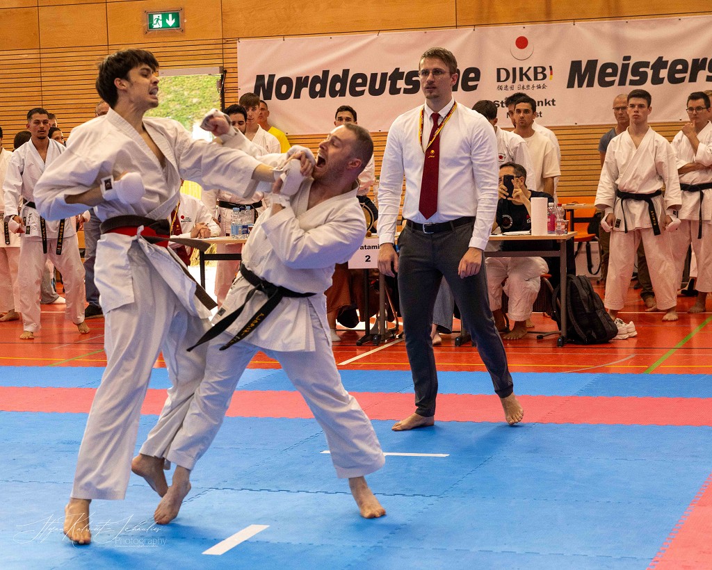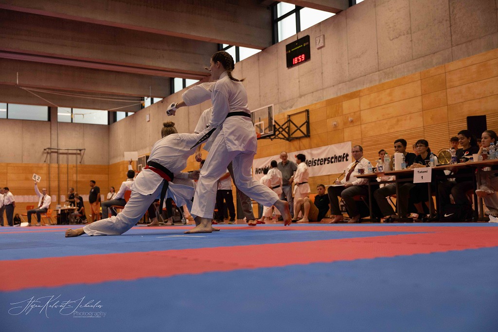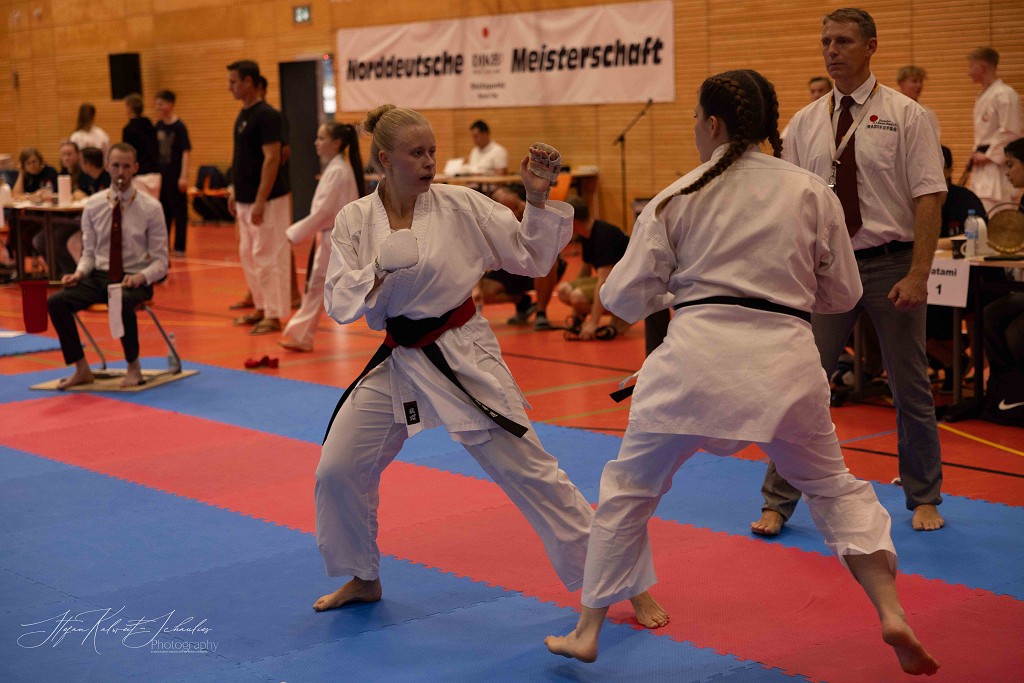 In der Disziplin Kumite dominierte Hannah Schmidt vom HKC ihre Gruppe. Problemlos meisterte sie jede Begegnung im Kihon Ippon Kumite und wurde Norddeutsche Meisterin. Ein besonders groĆe Entwicklung hat Wilhelm Witt seit seinem letzten Start auf der Norddeutschen Meisterschaft gemacht, lobt sein Trainer Stephan Walsleben. Die Verbesserung ist enorm, sei es im Kumite, in dem er mit seinen krƤftigen und blitzschnellen Bewegungen glƤnzte, die Angriffe sauber abwehrte und sich mit seinen prƤzisen Gegenangriffen Punkt um Punkt holte. Leider fehlte ihm zuletzt einmal das notwendige Distanzgefühl, sodass er wegen zu starkem Kontakt den Kampf verlor. Ein Fehler, aus dem er viel für die Zukunft lernen wird. Im Kata-Shiai setzte er sich in allen Vorrunden eindeutig gegen seine Kontrahenten durch. Im Finale legte er noch einmal nach und wurde mit seiner technisch sauberen und ausdrucksstarken Kata Norddeutscher Meister. Bei den Herren ab 18 Jahre hat Louis Keffel sehr hart an sich gearbeitet und sowohl in Sachen Physis, als auch Technik noch einmal mehr aus sich herausgeholt. Das bewies er am Samstag eindrucksvoll vor allem im Kumite. Von der ersten Sekunde an ging er konsequent in seine Begegnungen und bewies, dass man in der Gruppe der HerrenĀ mit ihm rechnen muss. Seine harte Arbeit hat sich gelohnt und Louis sicherte sich die Goldmedaille. Bei den Damen taten es ihm Celina Kreutz und Sophie Willuweit gleich. Beide traten in einer starken Gruppe an, die gespickt war mit erfahrenen KƤmpferinnen, die die beiden auch aus der Nationalmannschaft kennen. Jedoch lieĆen sie alle in hart umkƤmpften Runden hinter sich und machten den Sieg am Ende untereinander aus. Dabei hatte Celina die Nase vorn und belegte Platz eins vor Sophie. Im Kumite-Team vervollstƤndigte Veronika Drobova vom Ippon Frankfurt die Mannschaft und gemeinsam gelang ihnen auch hier der Sprung auf das hƶchste Treppchen. Der Lohn für ihren TrainingsfleiĆ und die über Jahre hinweg konstante Leistung, lobte Stephan Walsleben.