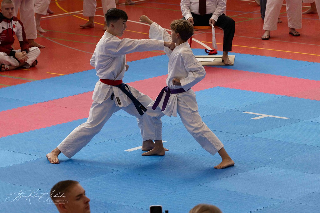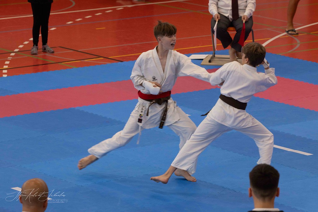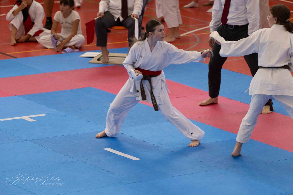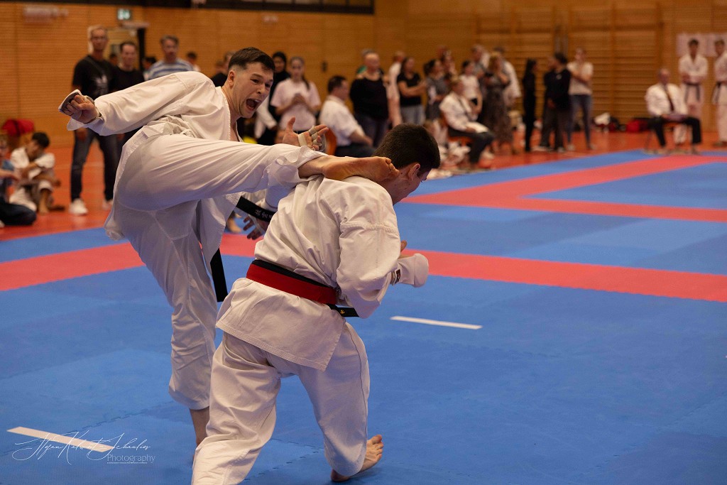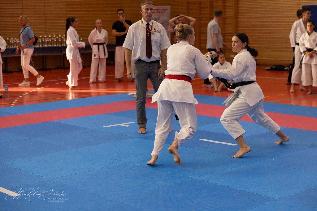 In der Disziplin Kumite dominierte Hannah Schmidt vom HKC ihre Gruppe. Problemlos meisterte sie jede Begegnung im Kihon Ippon Kumite und wurde Norddeutsche Meisterin. Ein besonders groĆe Entwicklung hat Wilhelm Witt seit seinem letzten Start auf der Norddeutschen Meisterschaft gemacht, lobt sein Trainer Stephan Walsleben. Die Verbesserung ist enorm, sei es im Kumite, in dem er mit seinen krƤftigen und blitzschnellen Bewegungen glƤnzte, die Angriffe sauber abwehrte und sich mit seinen prƤzisen Gegenangriffen Punkt um Punkt holte. Leider fehlte ihm zuletzt einmal das notwendige Distanzgefühl, sodass er wegen zu starkem Kontakt den Kampf verlor. Ein Fehler, aus dem er viel für die Zukunft lernen wird. Im Kata-Shiai setzte er sich in allen Vorrunden eindeutig gegen seine Kontrahenten durch. Im Finale legte er noch einmal nach und wurde mit seiner technisch sauberen und ausdrucksstarken Kata Norddeutscher Meister. Bei den Herren ab 18 Jahre hat Louis Keffel sehr hart an sich gearbeitet und sowohl in Sachen Physis, als auch Technik noch einmal mehr aus sich herausgeholt. Das bewies er am Samstag eindrucksvoll vor allem im Kumite. Von der ersten Sekunde an ging er konsequent in seine Begegnungen und bewies, dass man in der Gruppe der HerrenĀ mit ihm rechnen muss. Seine harte Arbeit hat sich gelohnt und Louis sicherte sich die Goldmedaille. Bei den Damen taten es ihm Celina Kreutz und Sophie Willuweit gleich. Beide traten in einer starken Gruppe an, die gespickt war mit erfahrenen KƤmpferinnen, die die beiden auch aus der Nationalmannschaft kennen. Jedoch lieĆen sie alle in hart umkƤmpften Runden hinter sich und machten den Sieg am Ende untereinander aus. Dabei hatte Celina die Nase vorn und belegte Platz eins vor Sophie. Im Kumite-Team vervollstƤndigte Veronika Drobova vom Ippon Frankfurt die Mannschaft und gemeinsam gelang ihnen auch hier der Sprung auf das hƶchste Treppchen. Der Lohn für ihren TrainingsfleiĆ und die über Jahre hinweg konstante Leistung, lobte Stephan Walsleben.